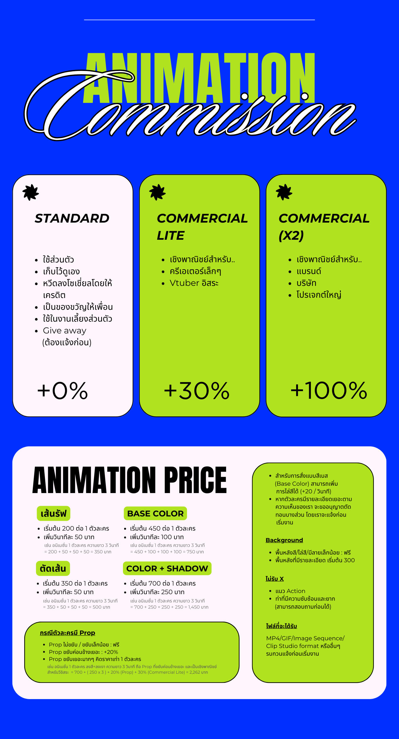 * หมายเหตุก่อนอ่านเรทราคา : ตอนนี้เรายังเป็นนักศึกษาและอนิเมเตอร์ฝึกหัด ไม่ได้มาจากอุตสาหกรรมโดยตรงจึงยังอยู่ในช่วงเรียนรู้และพัฒนาอย่างต่อเนื่อง ขอบคุณสำหรับความเข้าใจและการสนับสนุนนะคะ🥹 *